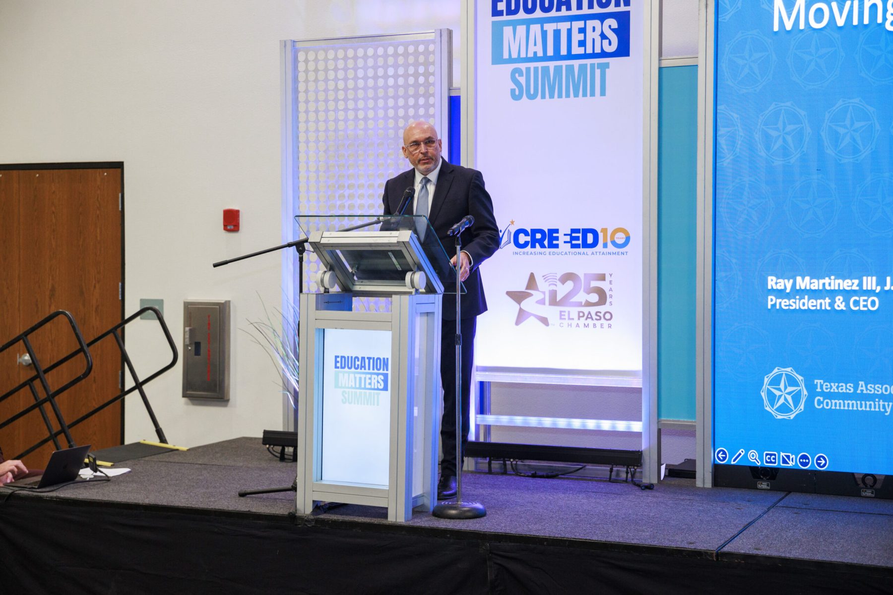 La cumbre de este año incluyó un discurso principal de Ray Martínez, presidente y director ejecutivo de la Asociación de Colegios Comunitarios de Texas, destacando el Proyecto de Ley 8 de la Cámara de Representantes de Texas, que vincula la financiación estatal para los colegios comunitarios directamente con los resultados de los estudiantes y las necesidades de la fuerza laboral regional.